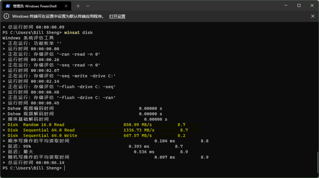 利用 WinSAT 进行的磁盘性能测试结果