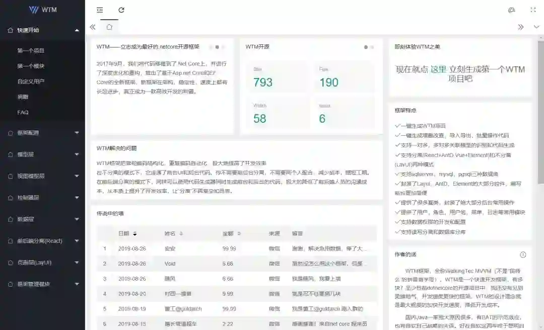 WTM框架地址: https://wtmdoc.walkingtec.cn/