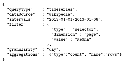 论文中对 HTTP 查询 API 进行了描述,用户可以指定数据源、时间范围、过滤和聚合。