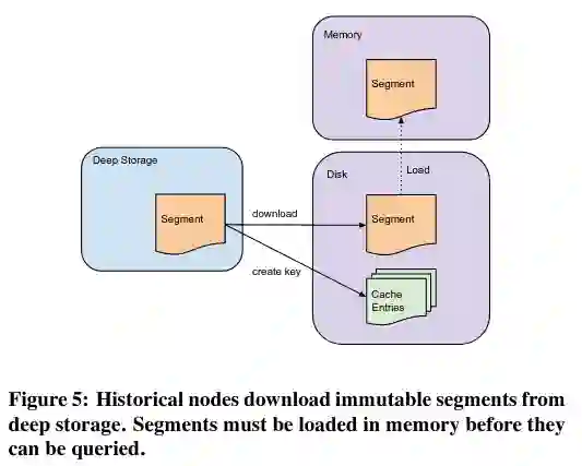使用不可变片段简化了历史节点的实现。首先,它简化了系统的伸缩——如果有多个请求涉及同一个片段,就会有更多的历史节点存储片段的副本,导致查询在集群中扩散。其次,操作数据片段而不是较低层次的抽象意味着历史节点可以简单地等待被告知有一个新版本的数据需要获取,而不需要监听片段是否发生了变化。