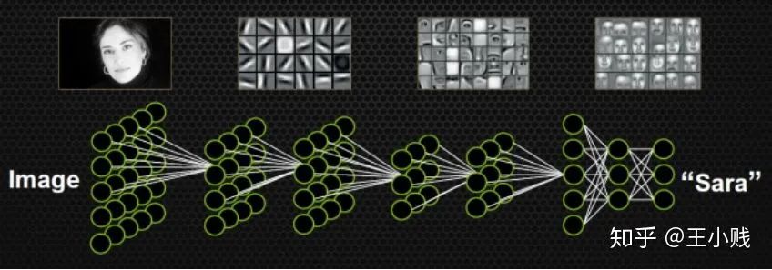 而通过一些对神经网络隐层的可视化我们也发现:比如下图的一个人脸识别的例子,神经网络在这个过程中先学到了边角的概念,之后学到了五官,最后学到了整个面部的特征。