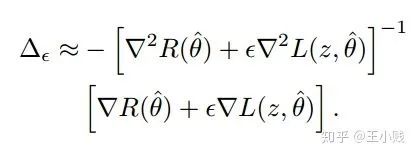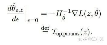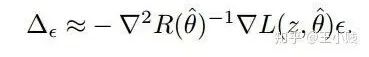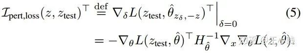 这个也就是影响力函数的表达式 ,根据这个定义,作者推导出了提升某个训练样本的权重或者对训练样本施加轻微扰动之后对特定测试样本损失函数的影响: