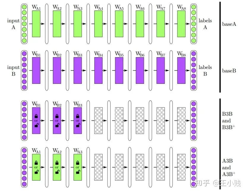 一个迁移网络A3B+,网络结构和A3B一样,但所有层都是可学习的