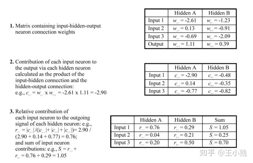 下图就通过一个例子描述了Garson方法对变量重要性的评估过程。