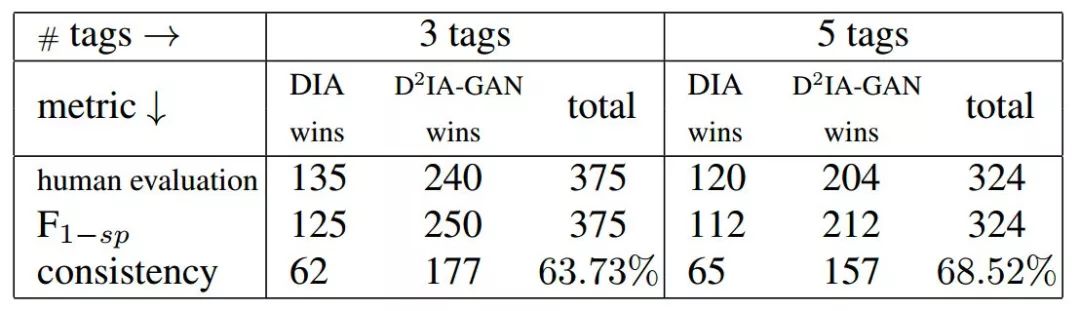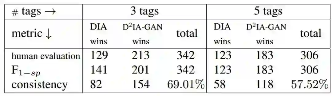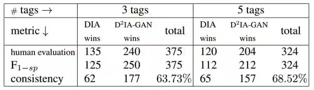 利用生成对抗网络(GAN)来训练D2IA,在两个基准数据集上开展了充分的实验,包括定量和定性的对比,以及人类主观测试。实验结果说明,相对于目前最先进的自动图像标注方法,其提出的方法可以产生更加多样和独特的标签。