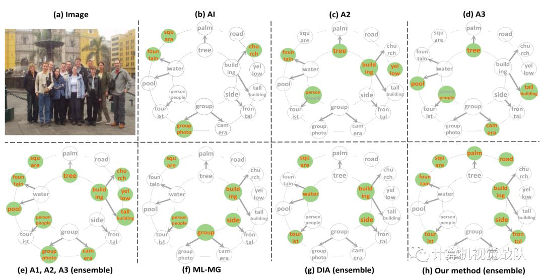 最近研究了如何提高生成标记的语义区分性,该方法利用一个行列式点过程(DPP)模型来生成语义冗余较少的标记。在示例图像上运行此算法的标注结果如图1(g)所示。然而,与人类标注相比,这样的结果仍然缺乏一个方面见图1(e))。人类标注的集体注释也往往是多种多样的,包括更多的图像语义元素的标记。