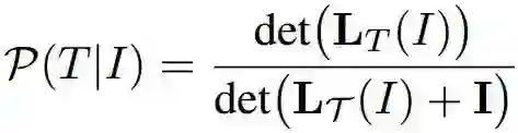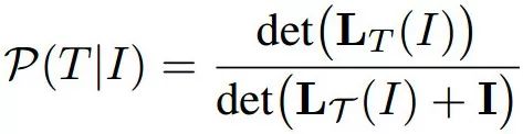 使用一个条件行列式点过程(DPP)模型来测量标记子集T的概率,它是从给定的图像I的特征X的真实集T导出的。