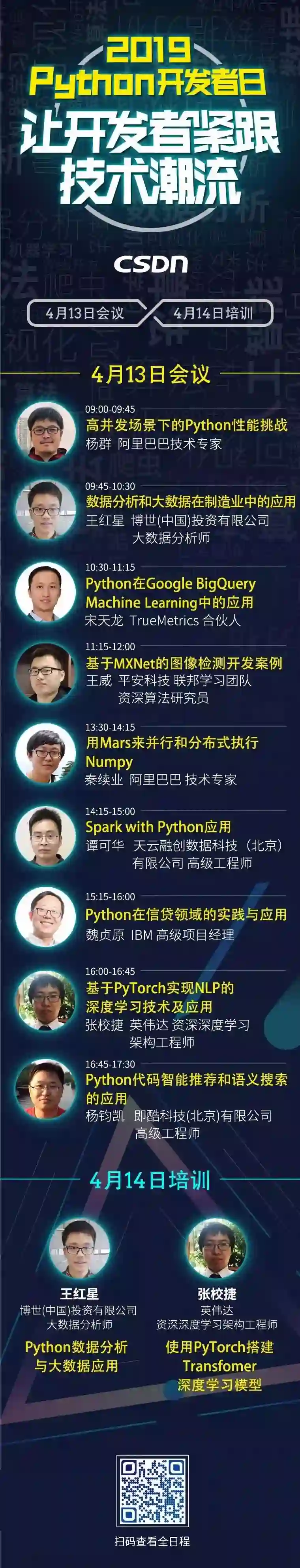 「2019 Python开发者日」演讲议题全揭晓!这一次我们依然“只讲技术,拒绝空谈”10余位一线Python技术专家共同打造一场硬核技术大会。更有深度培训实操环节,为开发者们带来更多深度实战机会。更多详细信息请咨询13581782348(微信同号)。
