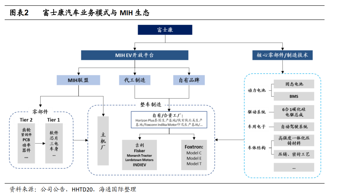 为了获得更多像苹果这样造车新玩家的订单,富士康特意推出“MIH(Mobility in Harmony) EV”开放平台和HHEV.OS软件系统,以此帮助潜在客户缩短整车制造周期。