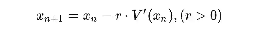 @Peter Griffin 的回答对我大有启发。对于一个优化问题,大的步长确实会带来混沌的可能。以一维梯度下降为例,在极值点的附近,我们可以对势函数做简谐近似,即展开到二阶项。由于常数项、一次项系数可以通过平移消去,二次项系数可以通过重新选取长度量纲而归一,我们实际上只要考虑