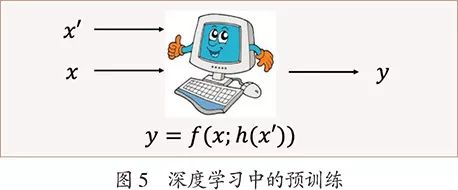 预训练是指用大量的无标注数据,事先训练语言表示模型,然后用于各种语言处理任务。图5显示了预训练与语言处理任务的关系,x′表示无标注数据,h(x′)表示通过预训练学到的表示模型,可以帮助任务y=f(x)完成得更好。甚至只需要有少量数据精调任务模型即可。最近预训练的语言表示模型BERT用于不同的语言处理任务,都带来了正确率的大幅度提升,让人惊叹。无标注数据是大量存在的,预训练技术促进自然语言处理发展的前景非常可观。深度学习权威杰弗里·辛顿教授(Geoffrey Hinton)等一直强调无监督学习是深度学习未来的发展方向,理由是机器需要像人一样只用少量标注数据就可以学到知识。他在最近的Google I/O 2019大会上阐述了同样的观点1。