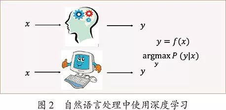 我们还不知道人是如何进行语言处理的。深度学习,特别是在监督学习的场景中,实际是在用数据驱动的方法模拟人的语言处理功能,参照人如何对给定输入产生相应输出,然后进行“模仿”,如图2所示。人工的神经处理和生物的神经处理有某些相似性,但更本质的是人工神经网络作为数学模型有很强的表达能力,深度学习作为机器学习方式有很强的学习能力。