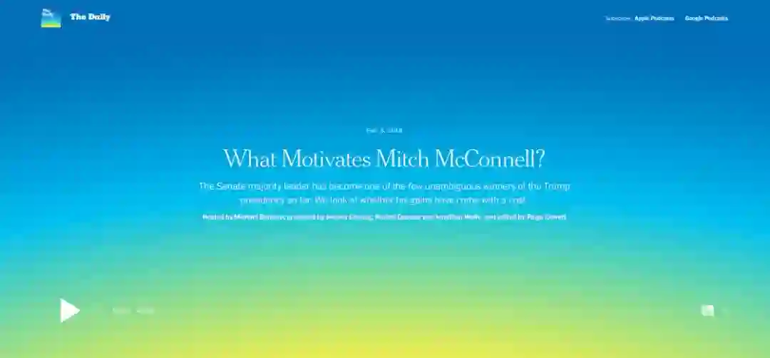我曾经收听过几周由《纽约时报》制作的高人气新闻类播客《The Daily》,但并没有坚持多久。取关的原因说来奇怪,正是这档节目成功的秘诀——它的新闻叙事太吸引人了,以至于让我感到不安。与传统新闻节目不同,《The Daily》从不向听众填鸭一套由记者整理好的事实和观点,而是将事件发展中的片段和素材、包括幕后的撰稿经历原样呈上。配合上精巧的剪裁、配乐和主播 Mike Babarro 抓耳的叙述,《The Daily》相当于引导着听众以记者的视角经历了一遍事件,从而产生强烈的代入感。