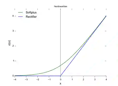 softplus函数的导数是logistic函数。ReLU和Softplus在很大程度上是相似的,除了接近0(零)时,softplus更加平滑且可微的。计算ReLU值及其导数比softplus函数更容易和高效,因为softplus的公式中包含log(.)和exp(.)计算。