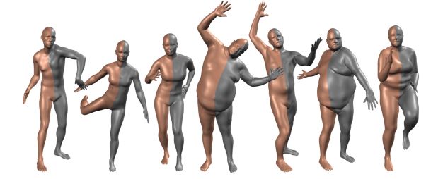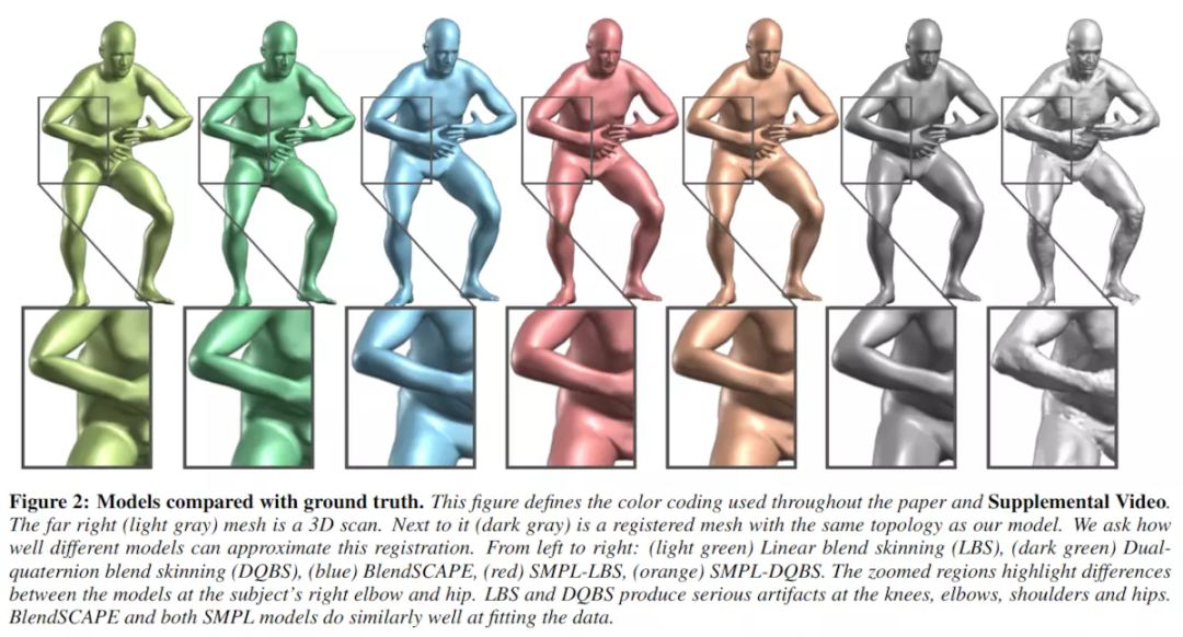 提出了一种新的人体形状和位置相关形状变化的学习模型,该模型比以前的模型更精确,并且与现有的图形管道兼容。蒙皮多人线性模型(SMPL)是一种基于蒙皮顶点的模型,它可以准确地表示人体自然姿态中的各种体型。模型的参数从数据中学习,包括rest位姿模板、混合权重、位置相关混合形状、身份相关混合形状和从顶点到关节位置的回归器。与以往的模型不同,与位置相关的混合形状是位姿旋转矩阵元素的线性函数。这个简单的公式使训练整个模型从一个相对较大的不同的人在不同的姿势对齐的3D网格。使用线性或双四元数混合皮肤定量评估SMPL的变体,并表明两者都比基于相同数据的BlendSCAPE模型更准确。还将SMPL扩展到动态软组织变形的真实模型中。因为它是基于混合皮肤的,所以SMPL与现有的渲染引擎兼容,可以将其用于研究目的。