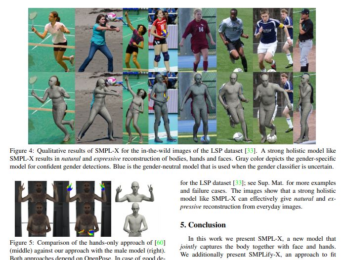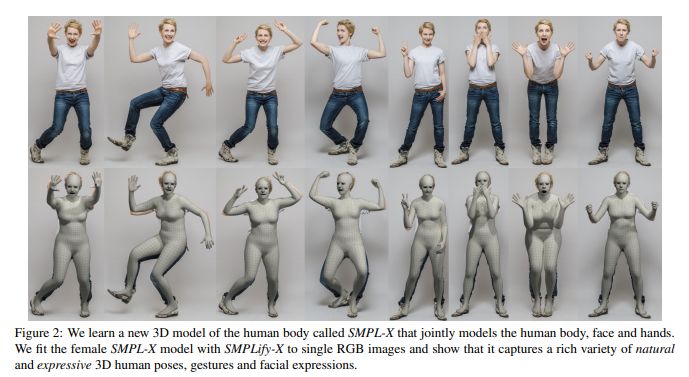 该论文检测与脸部,手部和脚部相对应的2D特征,并将完整的SMPL-X模型拟合到这些特征上;