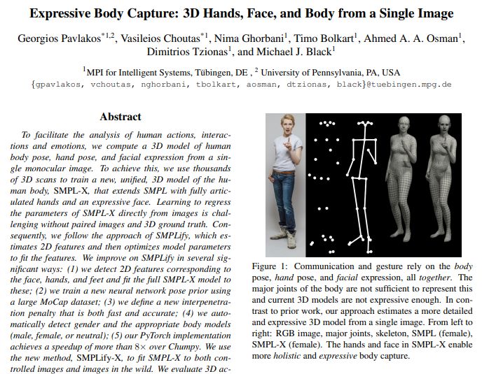 论文名称:Expressive Body Capture: 3D Hands, Face, and Body from a Single Image