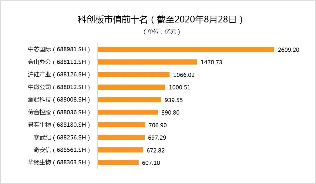 本周科创板上市公司市值前十的公司中,中芯国际(688981.SH)摘得桂冠;其后为金山办公(688111.SH)、沪硅产业(688126.SH)、中微公司(688012.SH)以及澜起科技(688008.SH)等。