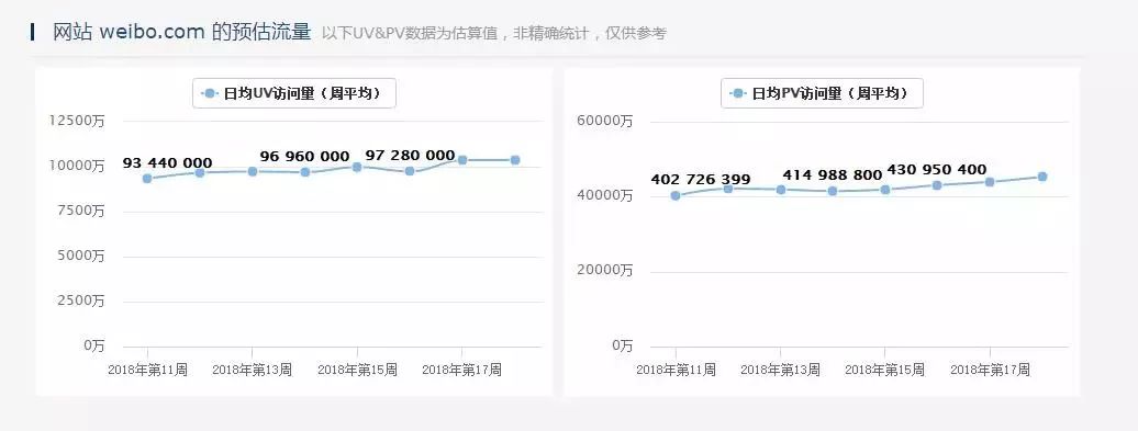 如果说这些数据都不能直观的反应出移动互联网时代豆瓣的颓势,我们可以再来对比一下同为互联网社区类产品,在2012年前后曾经和豆瓣用户体量所差无几,一时间齐头并进互为瑜亮的微博。