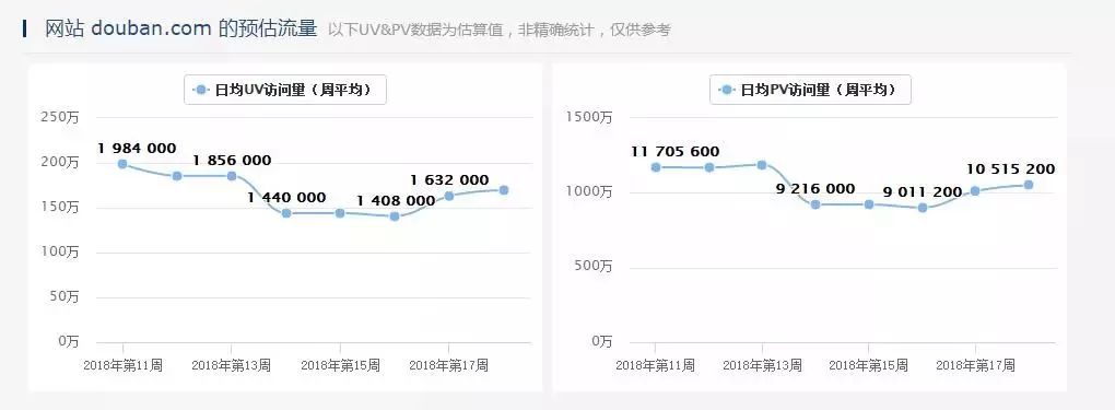 如今,豆瓣的日均UV是200万多一些,而微博为一亿多——5年过去,创办于2005年的豆瓣与2009年才开始发展起来的微博之间,前者在日均UV上要比后者差了50倍都不止——如今豆瓣的日均UV只是微博的零头的零头。