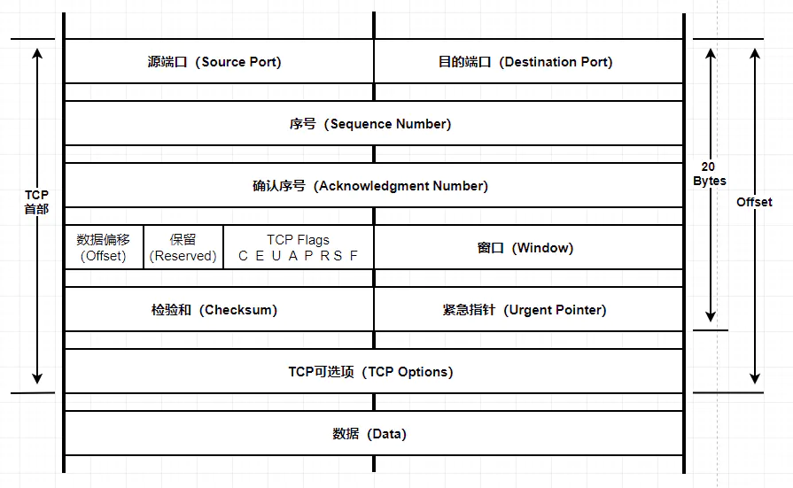 标志位:共6个,即URG、ACK、PSH、RST、SYN、FIN等