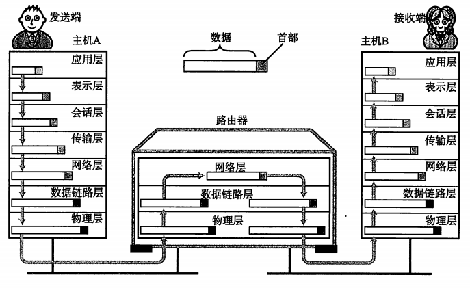 IP协议的职责,搜索对方的地址,一边中转一边传送