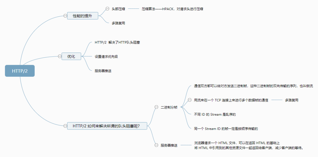 队头阻塞,大多数情况下,浏览器会希望同时获取许多资源,但http1未提供机制来同时请求这些资源,如果仅是使用一个连接,需要发起请求,等待响应,然后才能发起下一个请求。