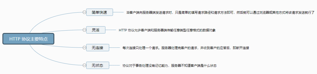 客户端,构建请求,通过DNS查询IP地址,三次握手建立TCP连接,客户端发起请求,服务器响应,四次挥手,断开TCP连接。(与服务器只有一个来回)