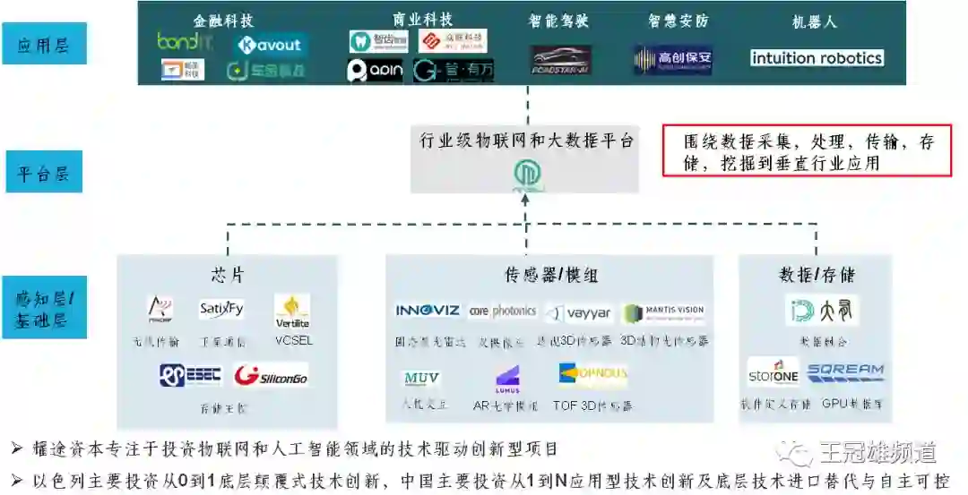 耀途资本在以色列投资布局了11家物联网和人工智能领域底层颠覆式技术,涉及智能传感(激光固态雷达,双摄底层算法,3D感知),卫星通信,智能投顾,AR,存储,人机交互技术和异构计算等细分行业。