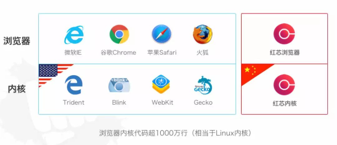 前不久的中兴事件,中国科技中缺芯的问题不只有硬件科技,在软件中也是如此。有了解过浏览器的小伙伴可能知道,其实我们现在用的国产浏览器,例如 360 浏览器、QQ 浏览器等,基本上都是基于国外的 Chromium 开发而来的,核心都是 webkit 核心。一直以来浏览器核心都在美国的垄断下。