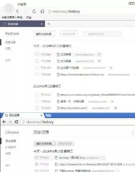 历史记录(上图为“红芯”,下图为“Chrome”)