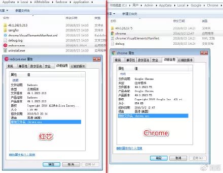 安装目录(左边为“红芯”,右边为“Chrome”)