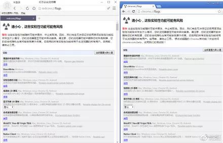 实验功能(左图为“红芯”,右图为“Chrome”)