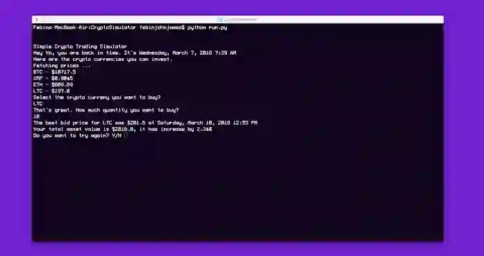 搞定!现在我们已经编写了一个简易版的加密货币交易模拟器。