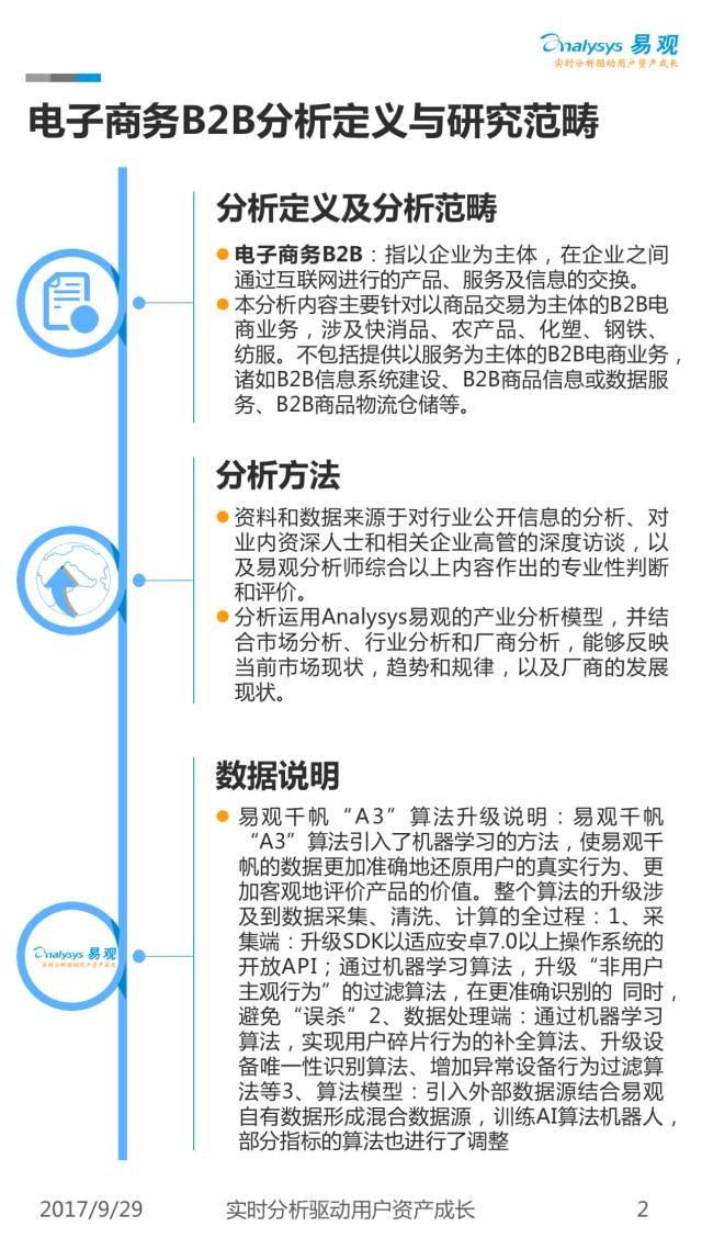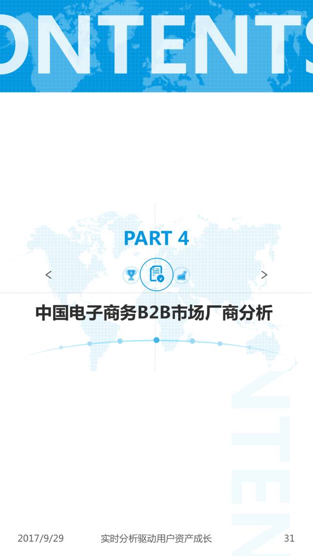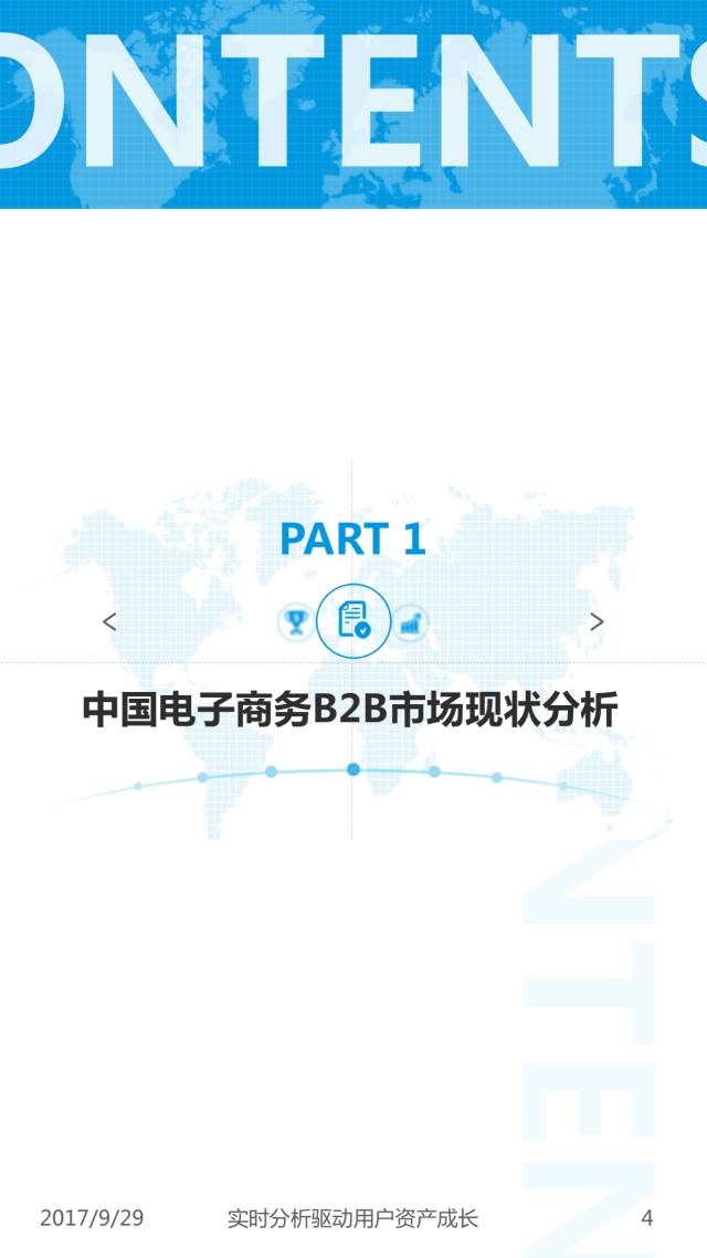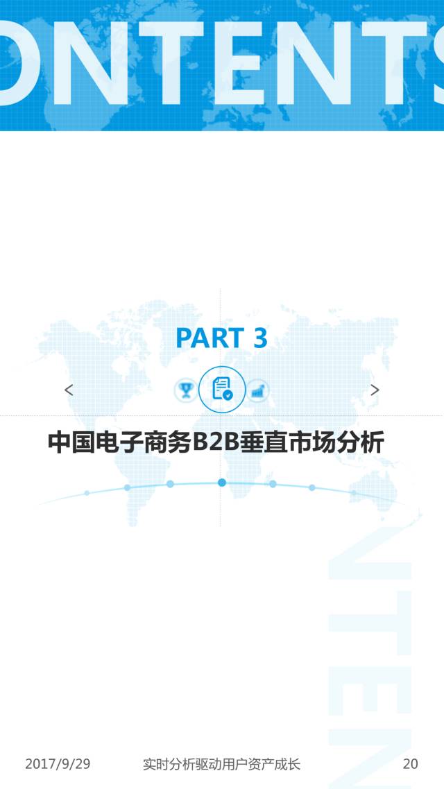 本报告分析了中国电子商务B2B市场的宏观环境、市场现状以及市场规模,并从综合B2B电商和垂直B2B电商两方面进行划分,分别分析了其发展阶段、运营模式、代表厂商情况。最后对电子商务B2B市场的发展趋势进行了展望。