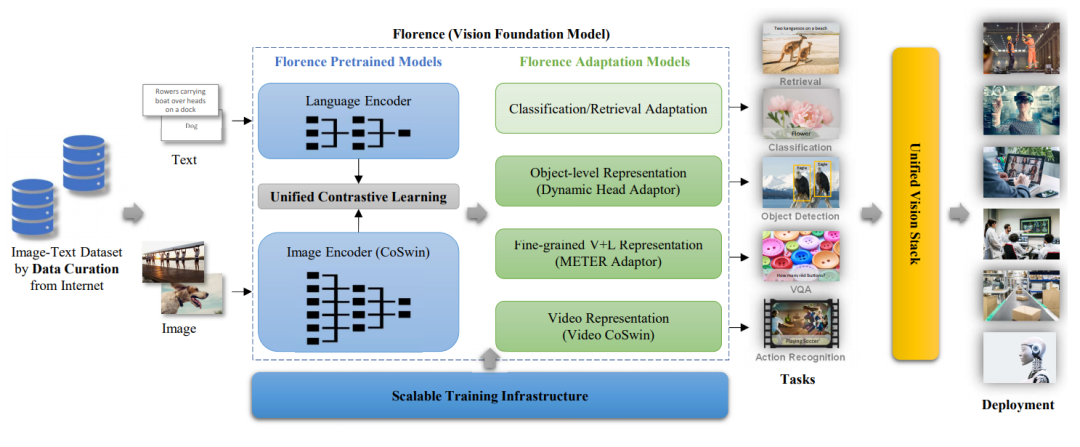 Florence成功地表明基础模型可以适应各种下游任务,最终集成到现代计算机视觉系统中,为现实世界的视觉和多媒体应用提供动力。
