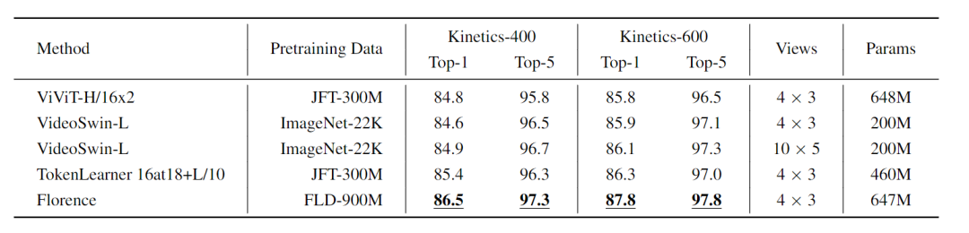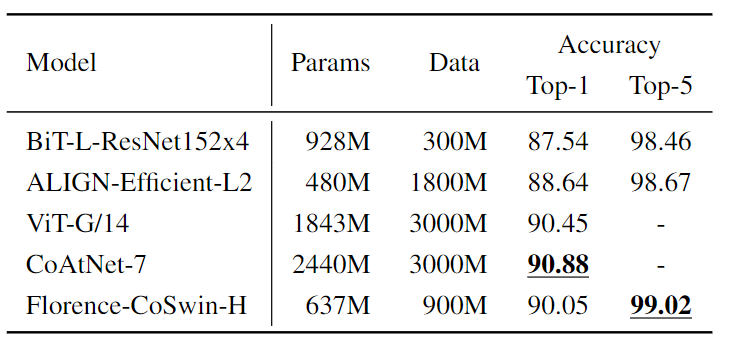 与其他ensemble模型相比,Florence模型使用的是一个单模型,并且还取得了更好的性能。
