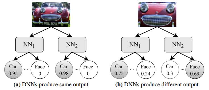 图 5:在两个相似的 DNN 中,输入诱导出不同的行为