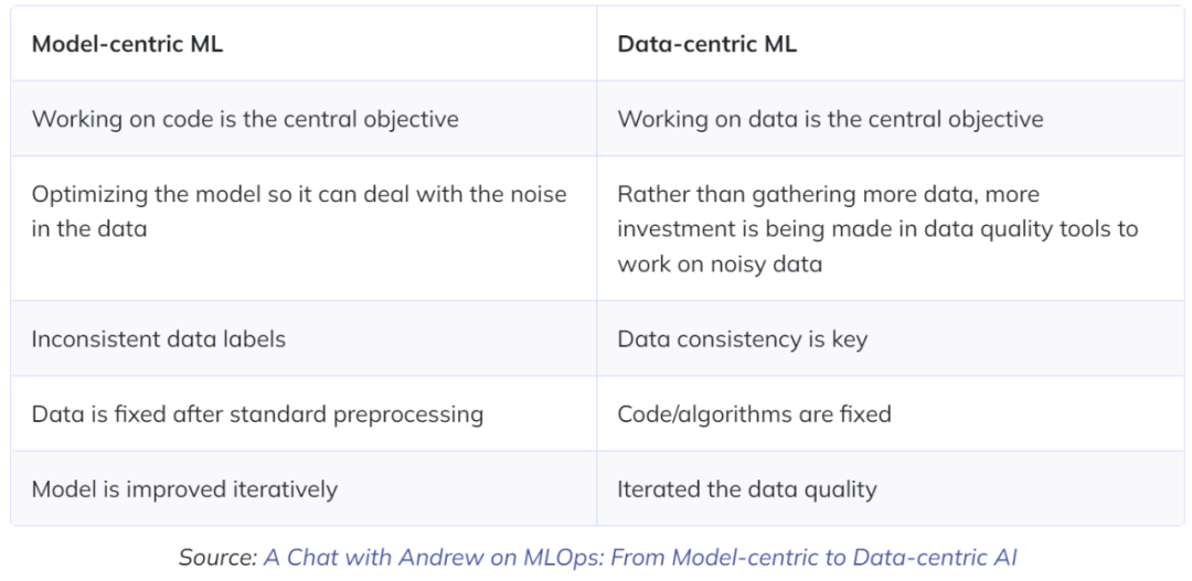 目前,大多数 AI 应用都是以模型为中心的,其中一个可能的原因是学术研究非常重视 AI 领域。根据吴恩达的说法,AI 领域 90% 以上的研究论文都是以模型为中心的,因为我们很难创建大型数据集,使其成为公认的标准。因此,AI 社区认为以模型为中心的机器学习更有前景。研究者在专注于模型的同时,往往会忽略数据的重要性。
