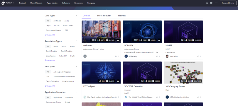 最后是 Graviti Open Datasets:Graviti 是一个新的数据平台,主要为计算机视觉提供高质量的数据集。个人开发人员或组织可以轻松访问、共享和更好地管理开放数据。