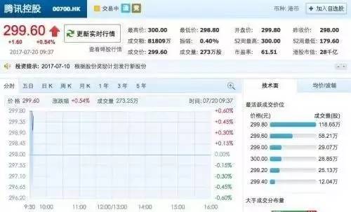 2、腾讯股价首超300港元创新高 市值突破2.8万亿港元