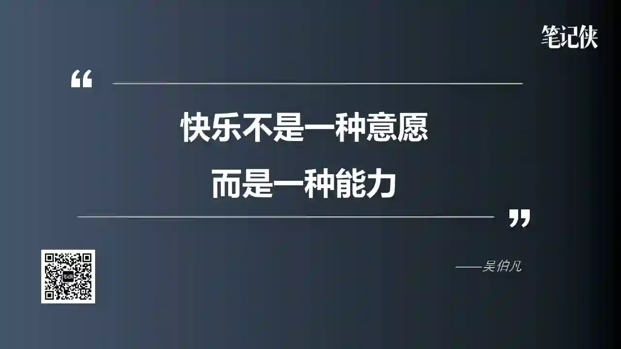 人在最初做事情的时候,是不在乎快乐、幸福与否的,但快乐不是一种意愿,而是一种能力。并非想快乐就快乐,想不快乐就不快乐,快乐的能力是需要培养的。
