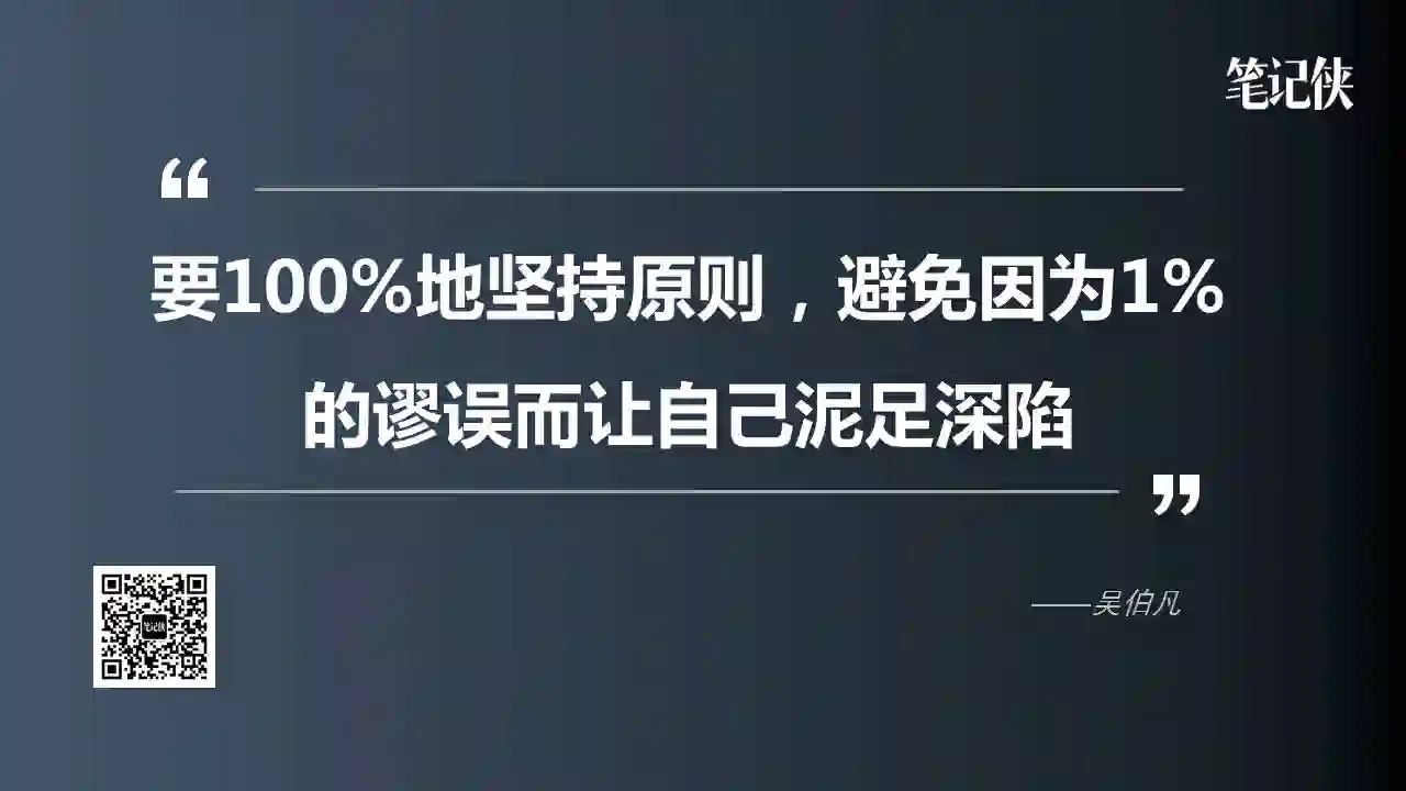 要100%地坚持原则,避免因为1%的谬误而让自己泥足深陷。