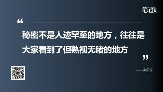 这三点说起来平淡无奇,但是恰恰是平淡无奇的事,大家最容易忽视。炒股、创业都好,我们要发现秘密,这个秘密不是人迹罕至的地方,往往是大家看到了但熟视无睹的地方。