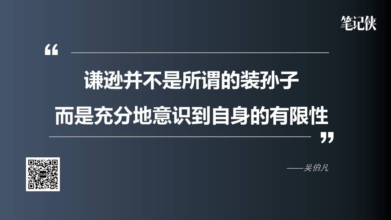 在职业生涯当中,谦逊并不是所谓的装孙子,而是充分地意识到自身的有限性,不要忘乎所以。
