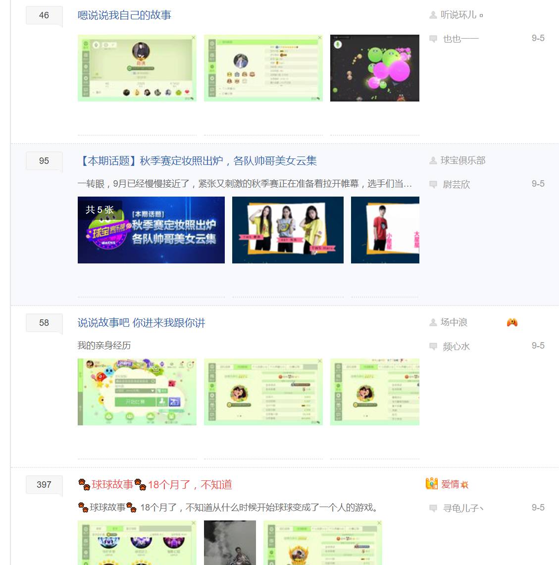 图注:贴吧里存在大量的故事贴,对这些人来说,《球球》切实地影响和改变了他们的生活