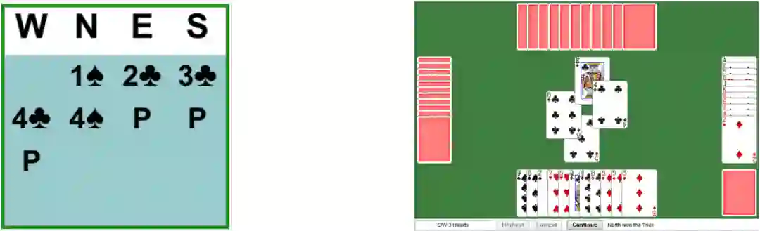 当然这里有个问题是我们只做了叫牌,没有做打牌,叫牌完了之后游戏就结束了,并以双明手(double-dummy)的分数,即所有牌摊开来打,来定胜负。