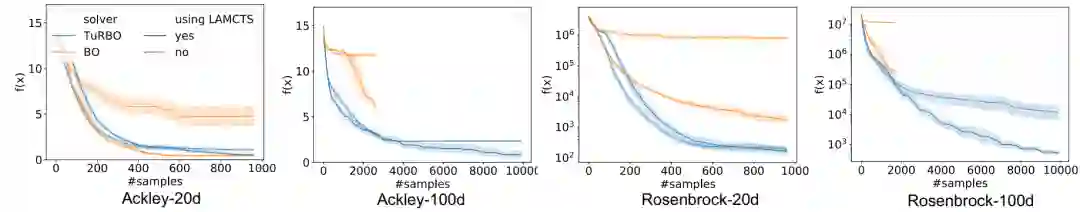 LaMCTS可以套在任何已知的黑盒优化算法上,一定程度上提高它们的性能。