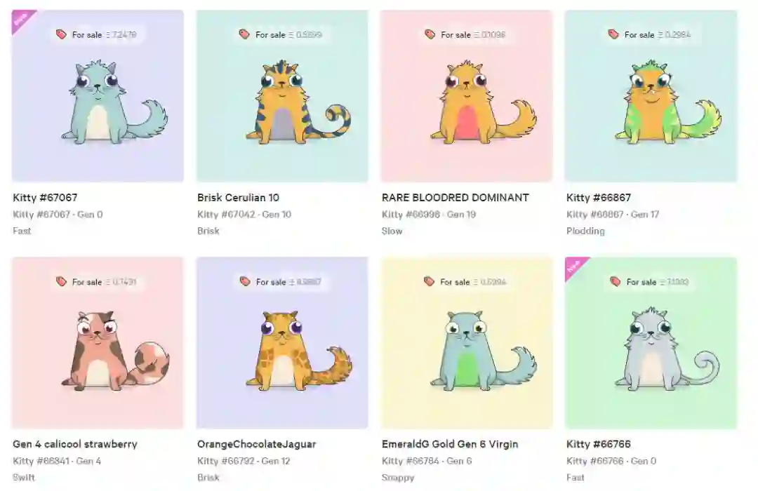 CryptoKitties基本上实现了非同质化道具的数字资产交易