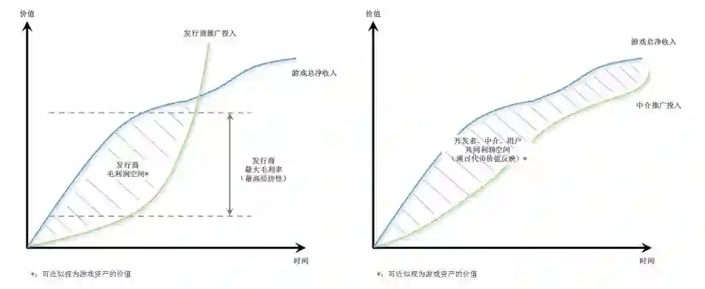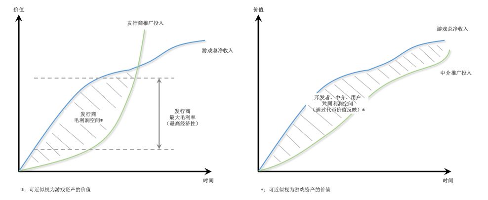 基于区块链,开发商也可以自己发行数字资产来筹集资本,让公司能够成功的运营下去。如果有IP支撑,有成功作品在市场上形成认知,道具还可以长期存在,开发商的生命周期也会比今天长很多。